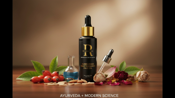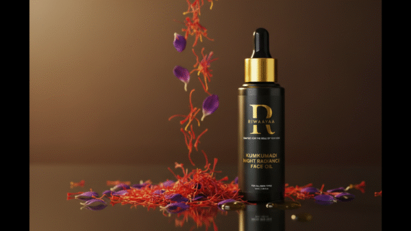 Experience the timeless wisdom of Ayurveda blended with modern skincare sensibilities through Kumkumadi Night Radiance Oil—a luxurious facial oil designed to nourish, restore, and revive your skin while you sleep.